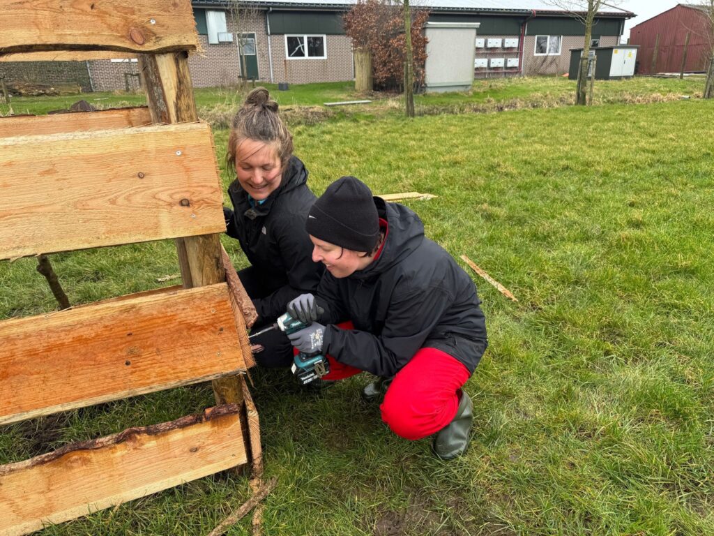 Houten afrastering maken bij Boerderij Eben-Haëzer in Nieuw-Lekkerland